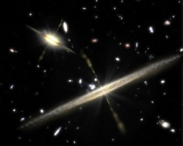 天文学家此前推测,这些超大质量的黑洞是源于许多微小黑洞的吞并而成长起来的,而微小黑洞的质量仅仅是与恒星级别相当,而事实上,早期宇宙中演化出物质,而后出现星系的时间点上根本不允许出现这些庞然大物,也就是说,从宇宙演化的时间导轨上看,这个时期没有足够的的时间聚集超大质量黑洞。所以,这些超大质量黑洞的出现方式可能是通过另一种途径出现。