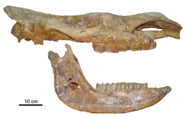 西藏披毛犀的头骨和下颌骨标本(邓涛供图)