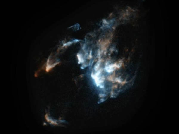 电脑动画截图。根据新制作的延时视频,研究小组制作了这个电脑动画,展现一个HH喷流以及在几百年时间里如何演化。研究小组领导人哈蒂根说:“我们的研究发现描绘出一幅喷流图像,进而了解喷流内物质的相互作用以及喷流与周围气体的相互作用。通过与现有模拟进行比较,我们能够进一步了解这种喷流。”研究结果刊登在7月20日的《天体物理学杂志》上。