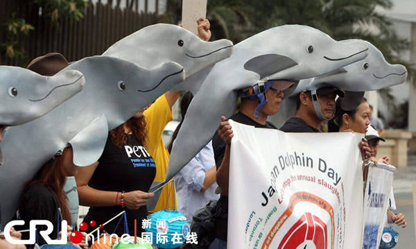 据《今日日本》9月2日报道,在日本太极湾一年一度的“杀海豚节”上,都会有大量海豚被杀害,此举引起各国动物保护主义者的强烈抗议。日前,这些抗议者聚集在日本驻多个国家使馆门前,抗议日本血腥残忍捕杀海豚的行为。