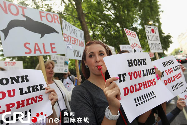 类似的抗议不仅发生在全美各地,还在伦敦、罗马、斯德哥尔摩、马尼拉等国际大城市上演。据悉,每年在日本太极湾,渔民都会将大约2000只海豚赶入隐秘的水湾,挑选出数十只卖给世界各地的水族馆或海洋公园,剩余的则被屠杀卖肉,海水一片血红。