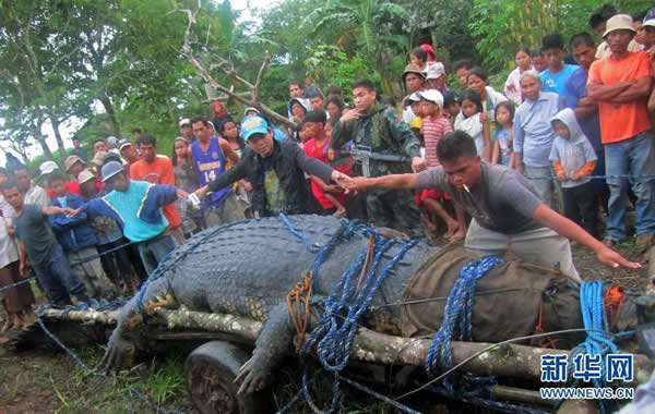 菲律宾居民活捉6.4米长巨型鳄鱼