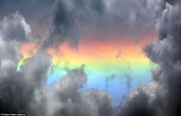 乌克兰摄影师安东•贾科维(Anton Jankovoy)使用采光功能极好的相机拍摄到这不寻常的水平形彩虹,这是一种由太阳光折射形成的天文奇观。英国气象局发言人说:“今年在英国天空已出现过几次环天顶弧现象,但从来没有贾科维看到的环天顶弧这么鲜艳,如火焰般绚烂。环天顶弧是由阳光或月光以一定的角度照射在高空卷云的冰晶上折射后形成的。”