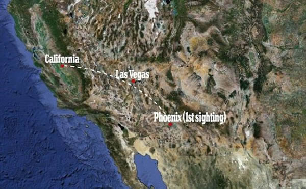 近日,从美国亚利桑那州的菲尼克斯到拉斯维加斯和洛杉矶,有数千人目击空中出现的火舌,地方当局收到大量有关这次事件的报告。然而专家表示,这种现象可能只是一颗火球——进入地球大气层的一颗小行星的碎片。