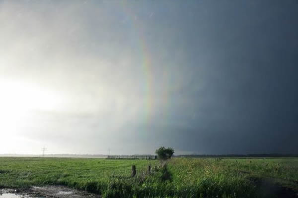 一旦配上美丽的背景,就像这幅摄于科罗拉多州的照片,彩虹就会显得特别壮观。但是雷蒙德教授说,其实这道彩虹和普通人家后院浇花的水管飞溅出的水花中出现的小小彩虹的“大小”是一样的。之所以前者大而后者小,只是因为我们看到的水管产生的彩虹是“大”彩虹的一部分而已。如果给它适当的条件,后院里的小小“水管彩虹”同样可以延伸至整个天空。