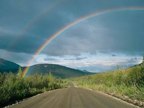 彩虹,包括这种在阿拉斯加上空出现的双重彩虹,是光线在大气水滴中发生折射和反射的结果。当光线被反射两次,就会出现这样的双重彩虹。而如果反射发生了三次,就会出现三重彩虹,以此类推。