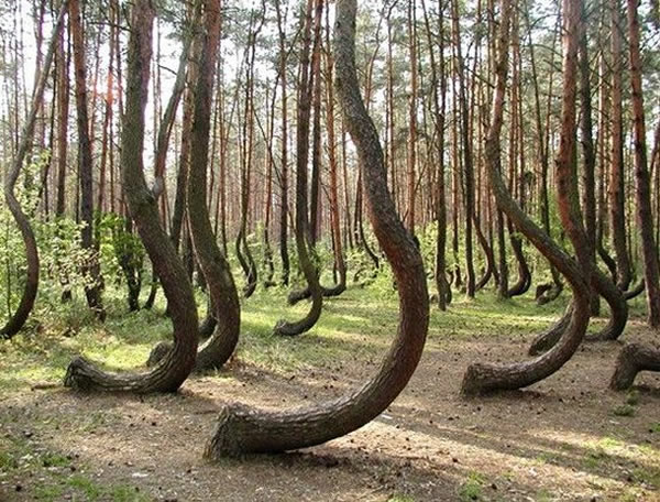 在波兰西北部城市格雷菲诺近郊的松树林里,人们发现了上百棵树干全部向北弯曲生长的松树。这些松树被当地人戏称“弯弯林”,而树木长成这样的原因至今仍是个谜。