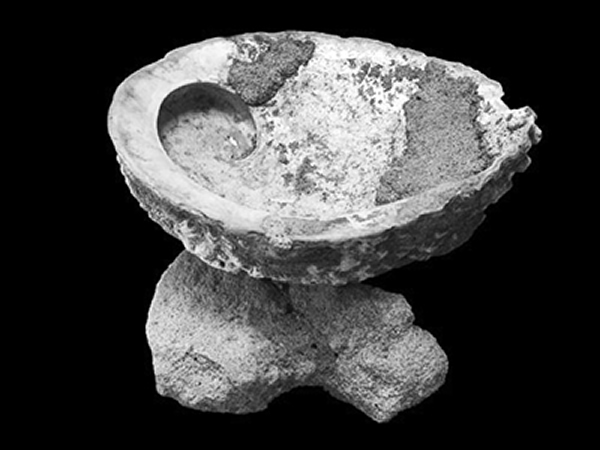 附着在两个鲍鱼壳上的赭石颜料