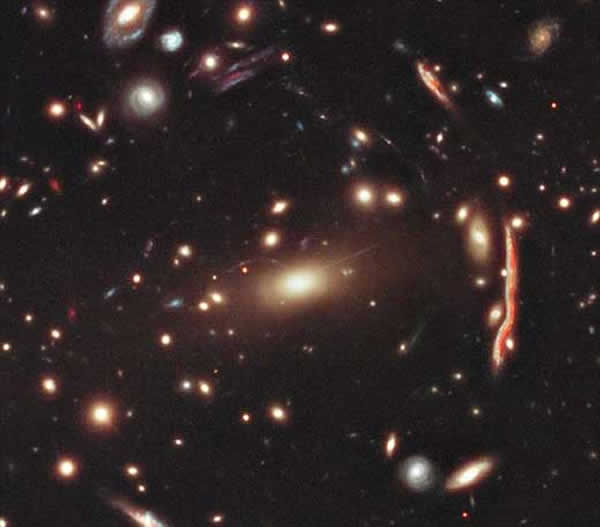 天文学家认为,星系群“MACS1206”周围的光会发生弯曲,足以能够说明在该星系群中存有大量的暗物质。而且从图片中也可以看出,如果在星系群“MACS1206”中仅存有与我们所见行星或者星球般质量的暗物质,则在图片中所见的弯曲图像就会更加微弱,这也从侧面说明了该星系中存有暗物质量的巨大。据悉,研究人员正在利用这个暗物质“地图”来对早先有关暗物质的研究结果进行测试,同时还发现,暗物质在星系群中的密度要比一些实验模型中大得多。至今,第一个星系群的精确形成时间还不能确定,但是据估测,它应该至少在90—120亿年前形成,如果CLASH能够调查到大部分的星系群中心处都含有过高含量的暗物质,那么就可以发现宇宙起源早期的相关研究线索,因此研究人员还将继续对星系群中的暗物质进行研究与探索。
