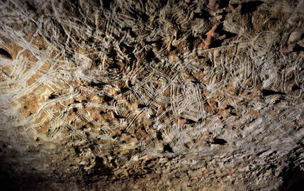 大多数学龄前儿童在墙上乱涂乱画都会遭到斥责,然而生活在13000年前的孩子的这种涂鸦行为却可能会得到表扬,至少在山洞里是这样。在位于法国西南部的8公里长的Rouffignac洞穴系统中充斥着大量的绘画和其他艺术作品,其中有一些与众不同的标记,被称为手指沟槽。它们是由人的手指在柔软的淤泥上滑过而在洞穴的墙壁上留下的线条。通过对现代人的手指沟槽进行分析,研究人员发现,位于手掌中央的3根手指之间的距离比例表明许多洞穴艺术家是非常小的幼童,其中一个仅有2到3岁。研究人员同时还能够根据手指的形状判断这些儿童的性别。其中的一些沟槽对于一名蹒跚学步的幼童而言未免太过稳定,这意味着一位成年人在手把手地教这些孩子如何绘画。