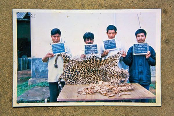 被捕的盗猎者和他们的战利品。2010年12月13日凌晨,印度声名狼籍的野生动物盗猎者纳伦-佩古终于在卡齐兰加国家公园内结束了生命。自2005年起,纳伦共猎杀了30头独角犀牛。他通常先是射杀,然后利用弯刀砍下犀牛角,并将战利品卖到那加兰邦,换回数千美元的收入。