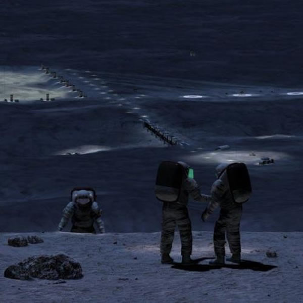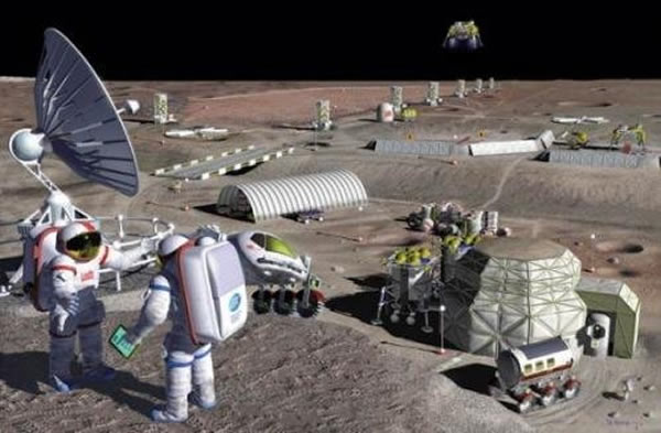 月球不仅提供了人类生存的水资源,还可用水制造火箭燃料使人类重复使用航天器,以月球为基地实现太空之旅。通过17个一系列增量太空任务,人类太空基地将建造完成,能够运行适宜人类居住。通过在月球周围部署通讯和导航卫星,可确保机器人系统操作的精确性。