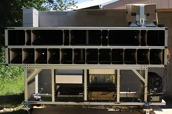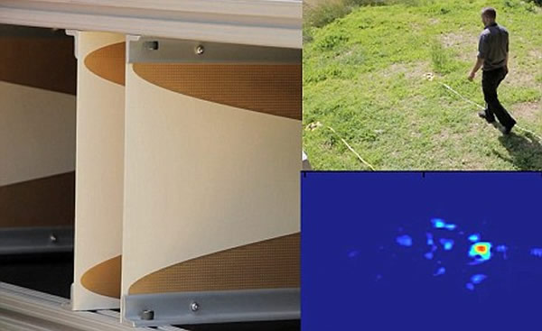 神奇雷达系统底部一排天线用于发射信号,顶部一排天线用于接收信号,以获得墙后物体的“一幅图画”