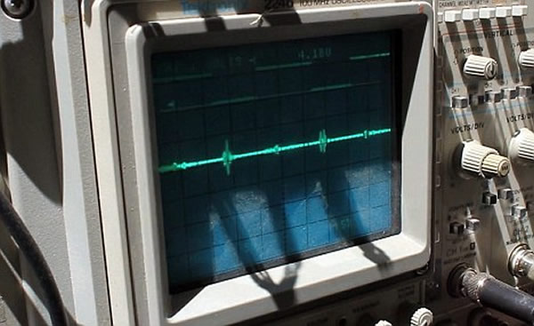 图中左边的机器接收信号,而右边的机器显示出墙后的男士在移动