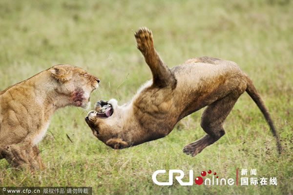肯尼亚狮子战斗中展示后空翻绝技 来源: 蜘蛛网 时间:2011年10月24日 14:51 肯尼亚狮子战斗中展示后空翻绝技 肯尼亚狮子战斗中展示后空翻绝技 肯尼亚狮子战斗中展示后空翻绝技 英国摄影师Elliott Neep日前在肯尼亚马赛马拉拍到了狮子战斗中展示后空翻绝技的一幕。当时,一头母狮带着她的孩子来到一匹斑马的尸体旁准备进食。而来自另一族群的一头幼狮由于靠得太近激怒了母狮,因而受到了惩罚,它为躲避母狮的攻击做出了后空翻的动作。 cfp 上一篇 下一篇 TAG: 肯尼亚 狮子
