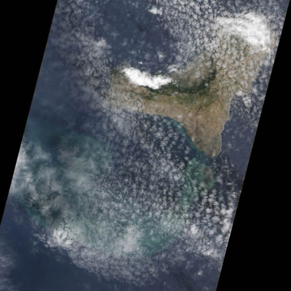 在埃尔-耶罗火山岛南岸的火山喷发口附近,可以看到绿色和棕色的火山灰羽状物。尽管该火山活动仍然处于地下,但近期已可以在表面看到炽热的气泡。不过,最新一期火山活动报告认为,该火山第一阶段的地下喷发活动可能已经结束。从火山喷发口区域获得的碎片中,并没有发现新的火山物质。