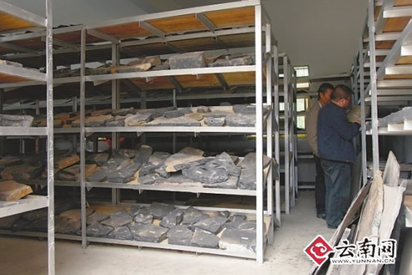 而就是在罗平古生物化石陈列室,记者看到了目前收藏的6000多块化石。化石保存对气温、空气流动、避光等等都有一些要求,“我们现在也没有什么办法,只能像这样放着,看着非常担心,每开一次标本陈列室的大门,我的心都疼”,李林波说。
