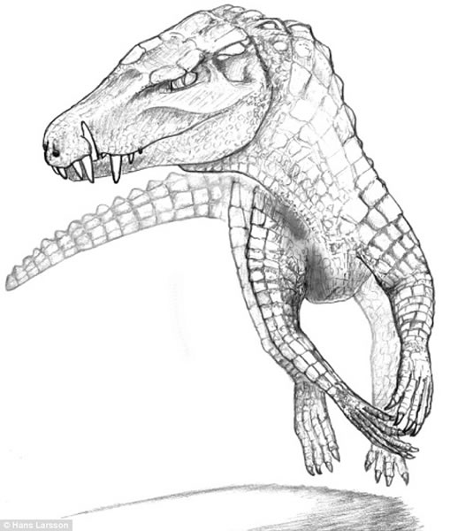 研究牵头人,魁北克省麦吉尔大学的Hans Larsson说,尽管现代的两栖鳄鱼有着扁平的头,但是这一新的发现给了我们新的启示:应该去探寻这种已经灭绝的奇怪种群——波罗鳄,它们有着高大的类似于狗一样的骨头和犬齿,四肢较长。它们或许和现代的野狗有某种关系。