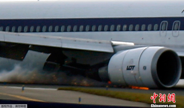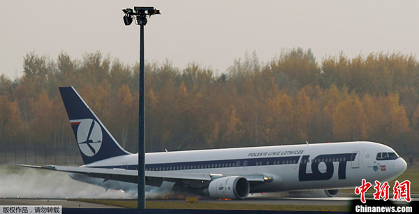 2011年11月1日,波兰华沙,一架波兰航空公司LOT的波音767飞机降落到华沙机场的跑道上。这架载有230名旅客的飞机因为起落架故障,降落时散发了出异样的烟雾。据媒体报道没有乘客在此次事故中受伤。
