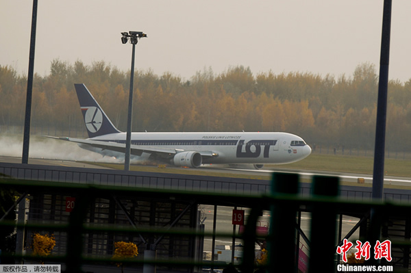 波兰一架客机因为起落架故障紧急迫降华沙机场