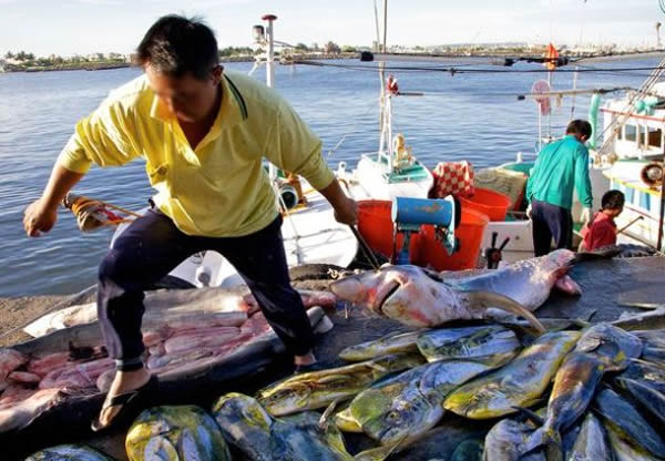 皮尤环境组织公布的一幅照片,一名台湾渔民正在拖他的战利品——鲨鱼。专家们表示台湾的捕鲨既有大规模,也有小规模,大规模捕鲨采用长线捕捞,在公海进行;小规模捕鲨则指当地的小型捕鱼船,在靠近海岸的海域进行。全球野生动物贸易监视网TRAFFIC的格伦-桑特表示,在台湾,85%被捕杀的鲨鱼来自公海。国际自然及自然资源保护联盟将生活在公海的一半以上的鲨鱼种群列为濒危或者近危物种。