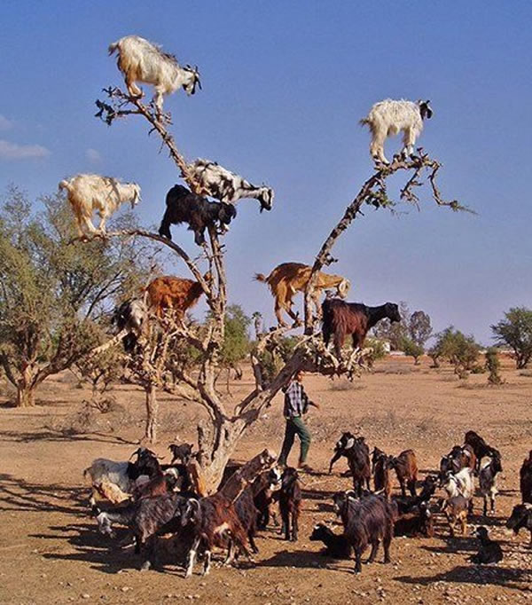 摩洛哥沙漠中的爬树高手——山羊 来源: 蜘蛛网 时间:2011年11月04日 11:50 摩洛哥南部沙漠,山羊们为了寻找食物,渐渐学会了爬树 澳大利亚摄影师奥利弗近日在摩洛哥南部沙漠拍下难得一见的一幕:9只山羊居然一同爬上了一颗5米高的老树,其中一只甚至淡定地立在树顶。 摄影师解释道,沙漠地区炎热干燥且缺乏水源,山羊为了生存便慢慢学会了上树的本领,而目标即是树上那些美味的树叶和坚果。“大约有30只山羊围在这颗树旁边,在我看到它们时,有几只已经站在树上了。随着山羊的移动,树干上上下下地随之摇晃着。” 中国新闻网 上一篇 下一篇 TAG: 摩洛哥 山羊