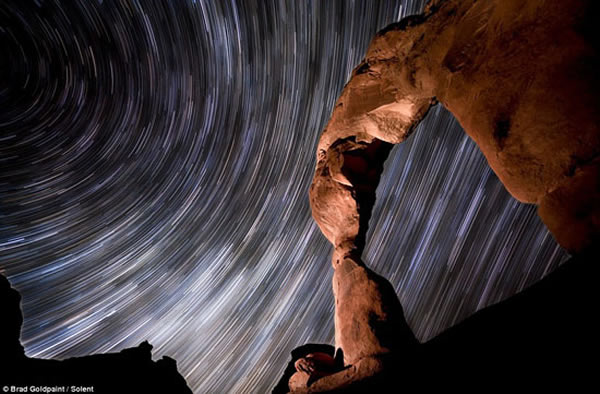 摄影师布拉德在美国犹他州拱门国家公园使用延时摄影器材捕捉到了这一令人惊叹的图片