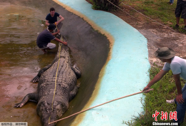 菲律宾捕获身长6.1米巨型鳄鱼 来源: 蜘蛛网 时间:2011年11月10日 12:00 菲律宾捕获身长6.1米巨型鳄鱼 菲律宾捕获身长6.1米巨型鳄鱼 菲律宾捕获身长6.1米巨型鳄鱼 当地时间2011年11月9日,菲律宾一小镇宣称捕获了一身长6.187米鳄鱼。 上一篇 下一篇 TAG: 鳄鱼 菲律宾