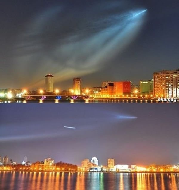 2009年12月,一种壮观的螺旋光线出现于挪威北部上空:中心释放着绿蓝色光束的巨大“螺旋体”,它的出现照亮了整个天空,并产生雨点涟漪效应。观看到这一景象的人们都认为这可能来自外星球的UFO光临地球。