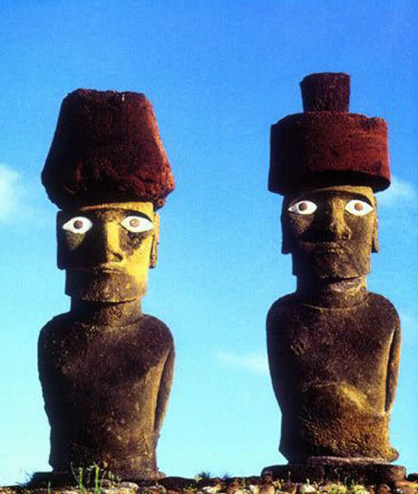 考古学家小组对红色石帽进行了深入研究,他们发现这些重达7吨的石材是由红色矿渣构成,是一种像浮石一样的火山岩石,它们是500-750年前由波利尼西亚人运送至此的。这些红色石帽放置被称为“moai”的石人像头顶上,这些巨大的石人像耸立在祭祀地点环绕在复活节岛的周围。目前这些石人像是如何雕刻以及如何运送到复活节岛上仍是一个难解的谜团。
