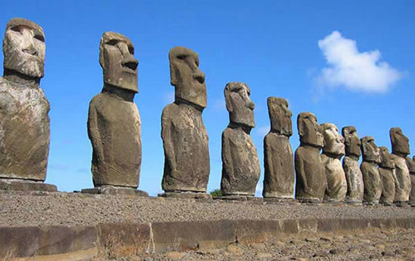 智利的复活节岛位於南太平洋水域,该岛是在1722年由荷兰人登上此岛的日期而命名,那天巧合是复活节正日,于是命名为——复活节岛。现岛上居民约2000人,都属波利尼西亚人种。复活节岛上的居民称自己居住的地方为“特比托奥特赫努阿”,意思是世界的肚脐。事实上,他们的说法的确没有错,因为复活节岛位于太平洋中部,正是世界的中部——肚脐,难道,岛上的居民从高空俯瞰过小岛? 这是不可能的,因为他们没有飞行器。那么肯定是有人曾经从高处俯瞰过小岛,把这些告诉给居民。