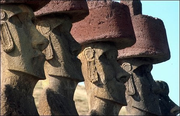 一提起复活节岛,人们首先想到的是那矗立在岛上的600多尊巨人石像。石像造型之奇特,雕技之精湛,着实令人赞叹。人们不禁要问,这么多的石像是什么人雕凿的?雕凿如此众多的石像的目的是什么?是供人瞻仰观赏,还是叫人顶礼膜拜?近些年来,一些国家的历史学家、考古学家和人类学家都曾登岛考察,企图弄个水落石出,结果虽提出种种解释,但也只能是猜测,不能令人信服。