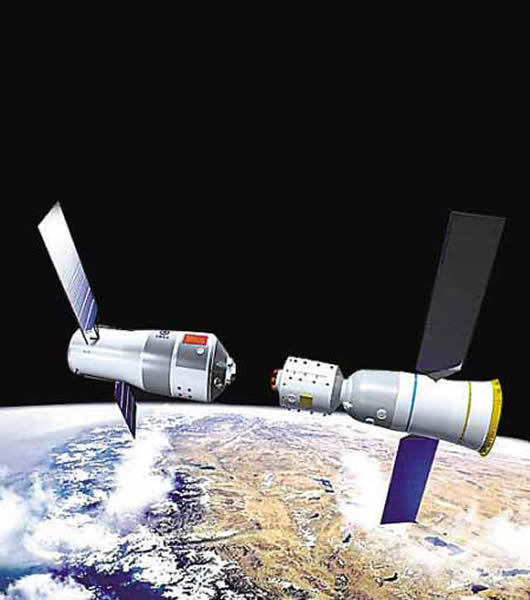 另据了解,昨天16时59分,组合体还进行了姿态调整,通过又一次太空转身,天宫由倒飞变为正飞,神八则在前面倒飞,这个姿态将一直保持至两者分离。