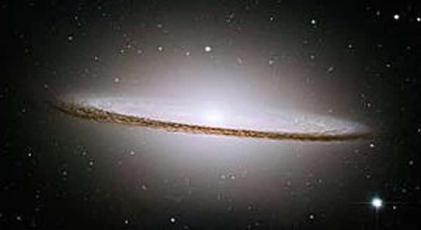 银河系类似于图中的草帽星系NGC4594--一个光盘形状的螺旋星系,含有约2000亿颗恒星。在银河平面的上方和下方有一个光环,其中包括数十亿年前形成的古老恒星。一般认为,这些古老恒星含有较少的金、铂和铀等重元素,但最新研究表明,宇宙形成早期,巨型恒星爆炸喷射到太空中的重元素形成了富含重元素的新恒星