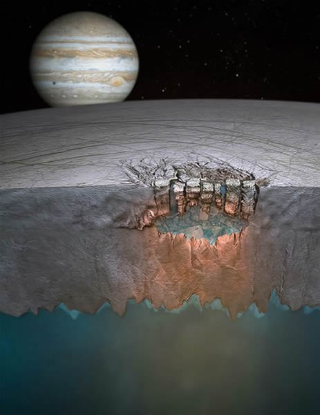 示意图:木卫二冰层下隐藏的湖泊