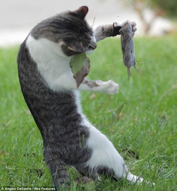 照片中,“德克斯特”尽情展现自己的捕鼠能力。抓到老鼠后,“德克斯特”并不急于将它吃掉,而是将它抛入半空。老鼠在空中翻了几个跟头后落地,而后又被“德克斯特”捕获。经过几番戏耍之后,老鼠才最终沦为“德克斯特”的盘中餐。所有人都有倒霉的时候,但再怎么倒霉,也无法与这只可怜的小老鼠相提并论。