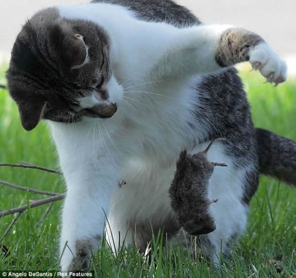 美国摄影爱好者拍到真实版猫和老鼠精彩瞬间