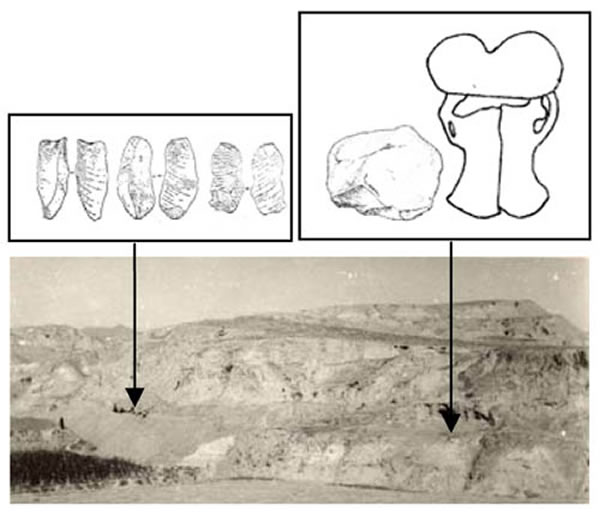 但是,在上个世纪70年代,人类演化的理论认为人类走出非洲是100万年前以后的事情,在中国发现100万年前的人类遗存似乎是不可能的。中国旧石器考古泰斗裴文中院士对其发现明确表示“是有疑问的问题”。众多的地质学者认为上沙嘴地点的地层不是“泥河湾层”,是河流阶地堆积。为了查明地层,笔者在1975年再次对上沙嘴地点进行勘察,虽然石器出土地点上覆地层具有明显的“泥河湾层”特征,但发现其地层的水平相变相当复杂。在石器地点NW40°70米处同一地层中发现10多件石制品,其中有3件类似石叶的石片(中国科学院古脊椎动物与古人类研究所标本编号:P4345-4347),依据当时的考古理念推测其时代应该是在更新世晚期。从当时象化石的报道来看,纳玛象物种开始形成在中更新世的印度纳巴达河一带,依据生物的时空演化路线推测,它在泥河湾盆地出现在晚更新世以后比早更新世更具有说服力。同时,从村民那里收集到一个原始牛角化石,据说是SW30°420米处挑水渠从砂砾层中发现的,在众人舆论的影响下将其层位与石器地点作为相同地层处理,而原始牛是华北更新世晚期出现的化石种,由此判断上沙嘴地点的时代应该属于更新世晚期,1980年贾兰坡和卫奇在《古脊椎动物与古人类》杂志上发表文章,将上沙嘴地点地层划归为桑干河第三级阶地堆积的底砾层。从此以后的30多年来,在“泥河湾层”中接连不断发现早更新世的旧石器时代遗存,最早的已经追索到了177-195万年前的松山(Matuyama)反极性期的奥杜威(Olduvai)正极性时段。然而,上沙嘴石器地点却变得“门前冷落车马稀”,无人问津了,在泥河湾的开发行列中也落伍了,在人们的记忆中已经完全淡化。