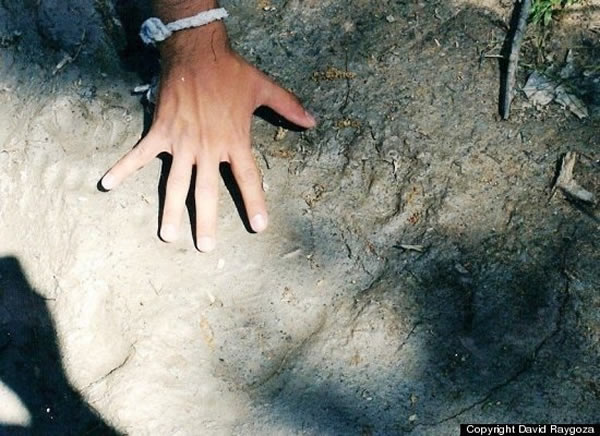 这是在2008年时于加利福尼亚夫勒斯诺市附近的亚塞拉利昂国家森林中发现的雪人脚印,从图片中可以对比出雪人有多么巨大。