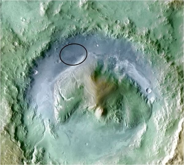 预计好奇号火星车将于2012年8月着陆在火星表面,着陆地点是160公里直径的加尔陨坑,在加尔陨坑中心有一个5千米高的堆积高地山脉,这一高度相当于珠穆朗玛峰高度的一半,高于美国境内任何山脉。