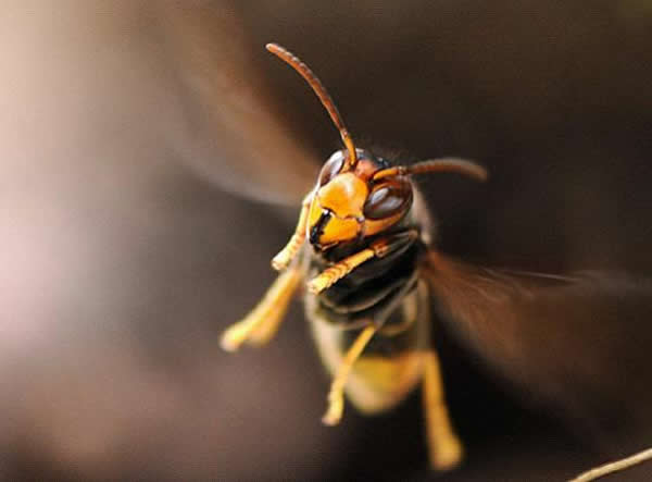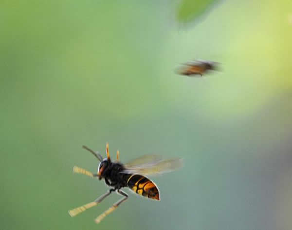 一只蜜蜂在空中被胡蜂抓捕到的瞬间。