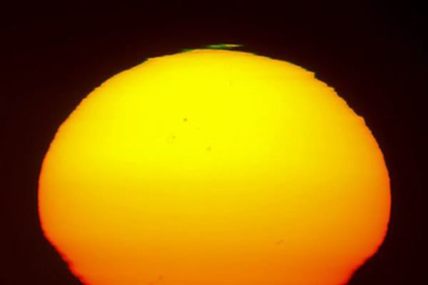 在伊朗山峰上拍到的太阳表面现神秘绿光奇景