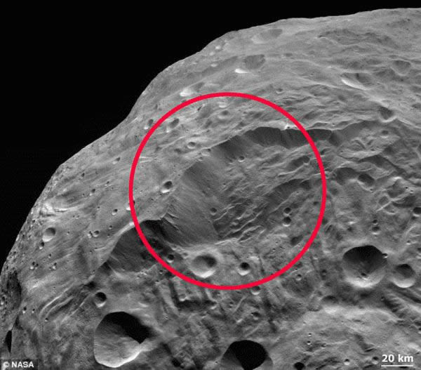 美国宇航局的“黎明号”宇航器近日发回一张令人惊讶的灶神星照片,从照片中可清晰的看到令人震惊的滑坡后景象,在该照片的中心能够看到一个从顶部裂到底部的12英里(约为1.93万米)深巨大滑坡深沟,甚至比地球上的比科罗拉多大峡谷还要深10倍。美国宇航局表示,该滑坡深沟出现在了悬崖的边缘上,这就意味着这里也许曾发生过一场巨大的滑坡。
