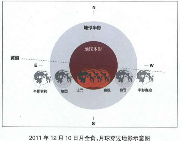 与十多年前的那次月全食类似,本次月全食最大的特点就是我国几乎全境可见其全过程。一次月全食有半影月食始、初亏、食既、生光、复圆、半影月食终等几个重要时间点。其中初亏是指月面刚开始进入地球本影的时间,标志着月偏食的开始。食既为月面完全进入地球本影的时间,生光为月面开始移出地球本影的时间,从食既到生光的阶段为月食的全食阶段。复圆为月面完全移出地球本影的时间,也意味着月偏食的结束。在偏食前后还有半影月食阶段,但这段时间内我们很难用肉眼观测到月面亮度的改变。本次月全食半影月食始为北京时间1 9时33分,初亏为20时45分,食既为22时06分,生光时刻为22时57分,复圆是在次日0时17分,半影食终为次日1时30分。当然无论是地球的本影还是半影,都没有非常明确的边界,这几个时刻前后我们也不会观测到月球发生非常显著的变化。