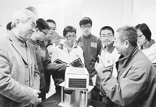 北京学生参与研制小卫星将搭载火箭飞向太空 来源: 蜘蛛网 时间:2011年12月05日 12:56 工程院院士戚发轫(前左)对公开展出的XW—2号DIY小卫星产生了浓厚兴趣 12月4日,在北京市东高地青少年科技馆,神舟号飞船首任总设计师、工程院院士戚发轫(前左)对公开展出的XW—2号DIY小卫星产生了浓厚兴趣。该小卫星是由专家、教师和学生组成的钱学森青少年航天科学院课题组成员共同研制的,不久它将搭载火箭飞向太空。 人民网 上一篇 下一篇 TAG: 太空 卫星