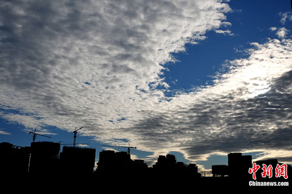 福州市区天空出现大面积的“鱼鳞云” 来源: 蜘蛛网 时间:2011年12月08日 11:44 福州市区天空出现大面积的“鱼鳞云” 福州市区天空出现大面积的“鱼鳞云” 福州市区天空出现大面积的“鱼鳞云” 12月7日,福州市区天空出现大面积的“鱼鳞云”。当日是二十四节气中的大雪,福建省气象台发布强冷空气预报,8日起福建省自北而南气温将明显下降。 中新社发 张斌 摄 图片来源:CNSPHOTO 上一篇 下一篇 TAG: 鱼鳞云
