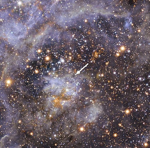 这项研究结果是美国天体物理学家在智利天文台观测蜘蛛星云中最重、最明亮恒星时发现的,蜘蛛星云是大麦哲伦星系(距离地球160000光年)中的恒星诞生区域。研究人员观测到的这颗恒星是VFTS 102,它非常炽热,是一颗高度发光恒星,是太阳亮度的10万倍。