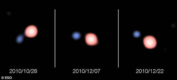 这个双星系统被称之为“SS Leporis”,位于天兔座,两颗恒星彼此环绕对方运转,轨道周期为260天。通过将欧洲南方天文台帕拉那天文台的4架望远镜捕获的光线结合在一起,天文学家获得拥有极高锐利度的吸血鬼恒星图像。帕拉那天文台海拔8600英尺(约合2621米)。这些图像的锐利度是哈勃太空望远镜所拍照片的50倍。研究报告主执笔人尼古拉斯-布莱德表示:“我们将4架望远镜捕获的光线结合在一起,以更快的速度形成拥有超级锐利度的图像。由于锐利度极高,我们不仅在图像中看到两颗恒星彼此环绕对方运转,同时也能测量较大恒星的体积。”