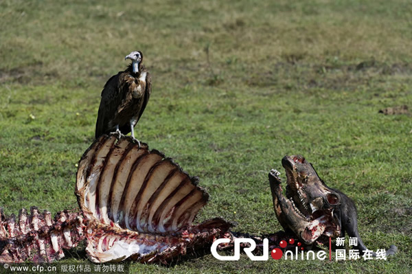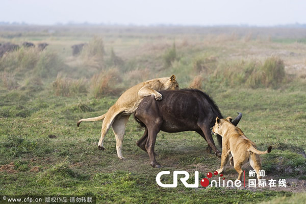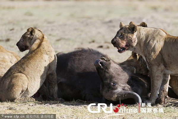 狮子捕食水牛 来源: 蜘蛛网 时间:2011年12月15日 11:18 狮子捕食水牛 狮子捕食水牛 狮子捕食水牛 狮子捕食水牛 狮子捕食水牛 狮子捕食水牛 这头不幸的水牛被其它水牛孤立了,为了躲避狮子跑得筋疲力尽,最后被狮子捕食。在秃鹰与它们抢食物之前,狮子已经将水牛的肉撕咬干净。摄影师Alfred Weissenegger是在一辆安全的狩猎吉普车上拍到这残忍的捕食画面的。 cfp 上一篇 下一篇 TAG: 狮子 水牛