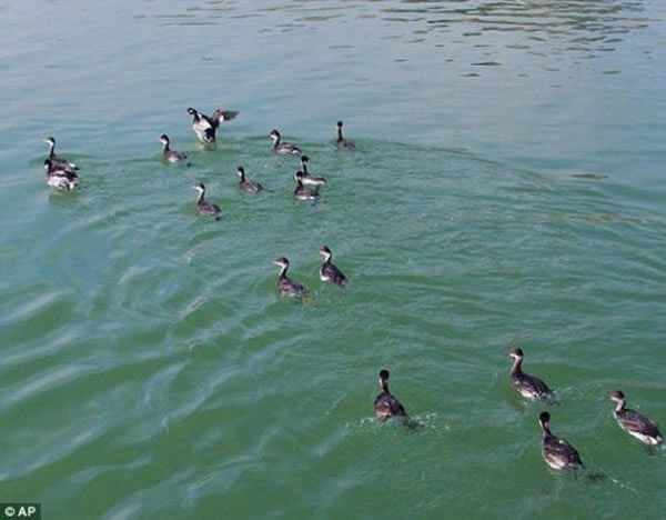 获救的水鸟被放归到附近的湖泊
